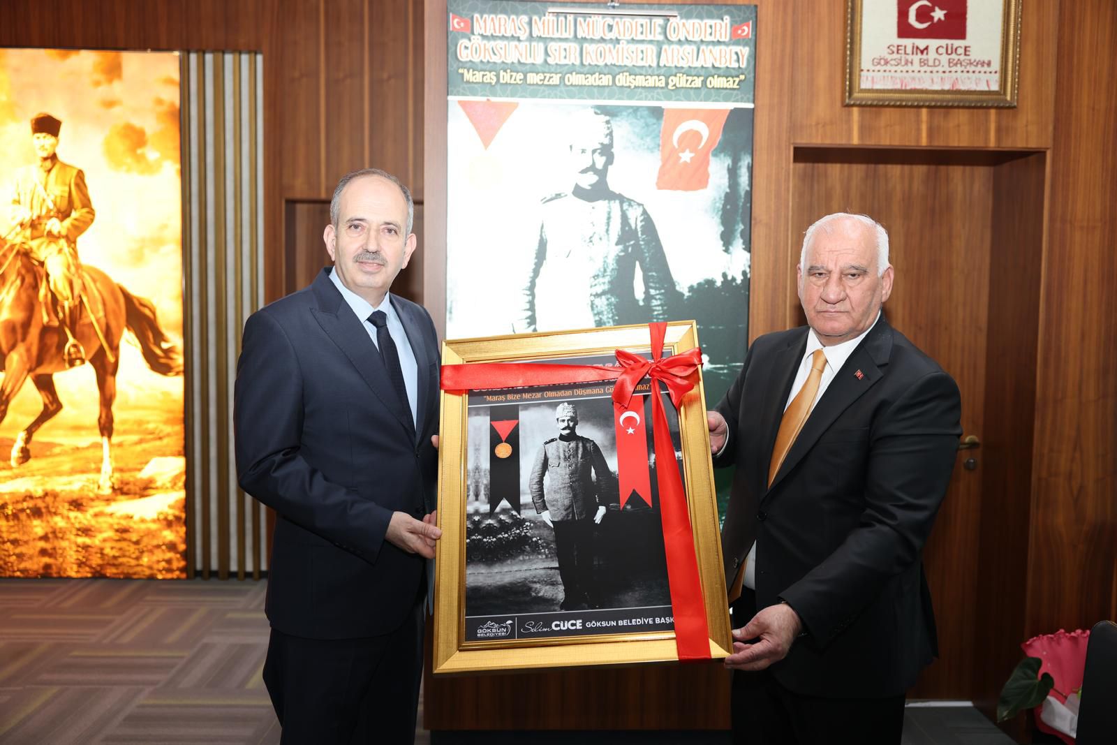 Kahramanmaraş İl Müftüsü Dr. Hasan Hüseyin Güller, beraberinde il müftü yardımcıları ve Göksun İlçe Müftüsü Akif Arıkmert ile birlikte Belediye Başkanımız Selim Cüce’yi makamında ziyaret etti.
