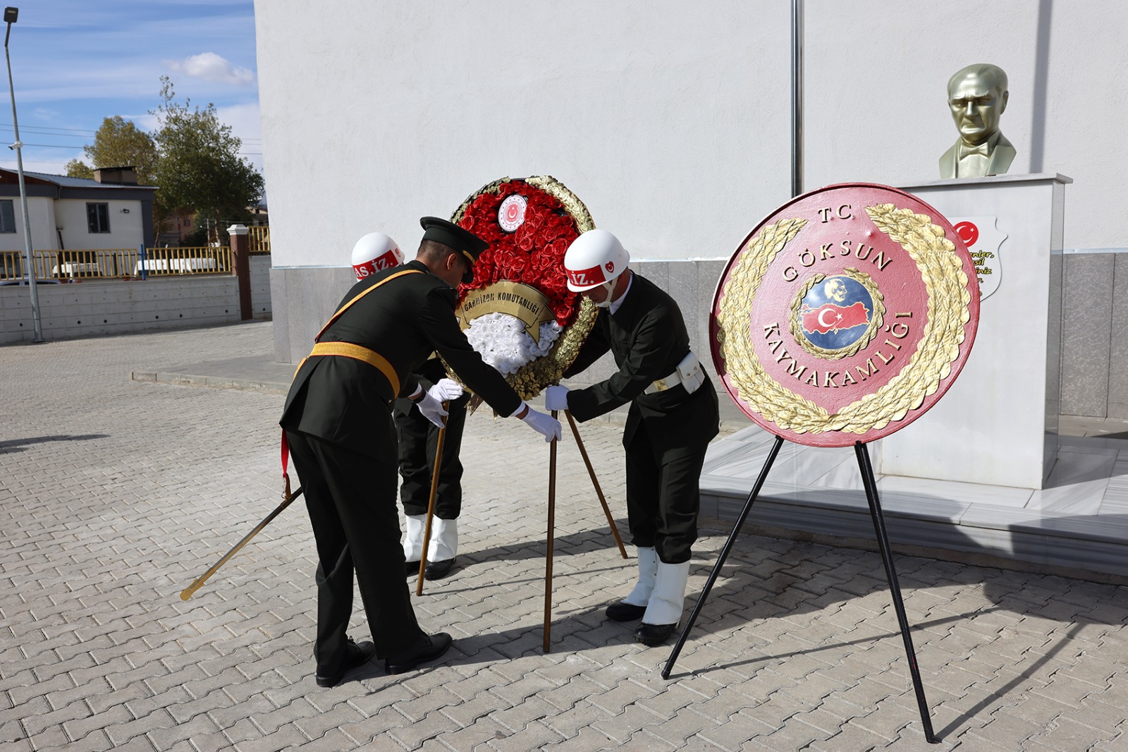 Göksun'da 29 Ekim Cumhuriyet Bayramı'nın 102'inci yılı kutlamaları çelenk sunma töreni ile başladı.