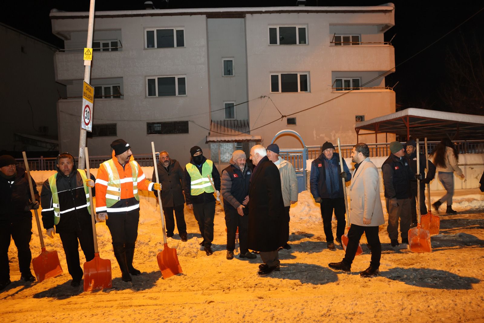 Yayaların ilçe caddelerinde güvenli ve rahat bir şekilde yürüyebilmesi, trafik akışının sorunsuz ilerlemesi ve günlük hayatın olumsuz etkilenmemesi amacıyla titizlikle yürütülen çalışmalara Belediye Başkanımız Sayın Selim Cüce de sahada katılarak ekiplerden bilgi aldı, özveriyle görev yapan personelimize kolaylıklar diledi.