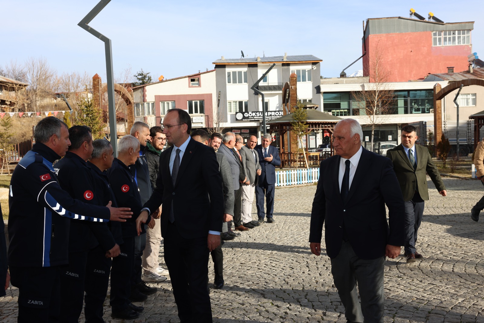 Ziyaretin anısına Belediye Başkanımız Selim Cüce tarafından Kaymakam Sarıdoğan'a el yapımı ahşap kanı hediye edildi. Günün anısına çekilen hatıra fotoğrafı ile ziyaret sona erdi.